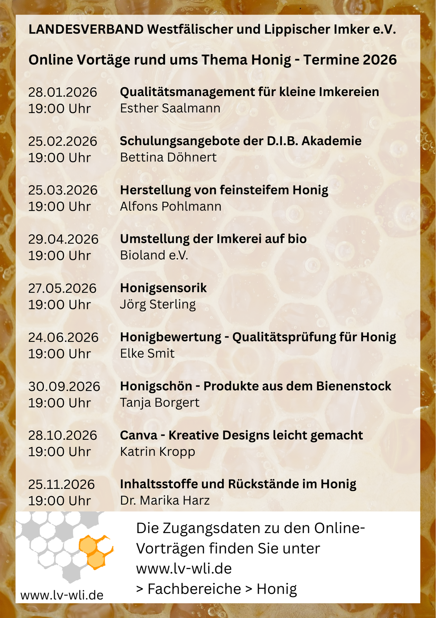 Einladung zu Online-Vorträge zum Thema Honig
