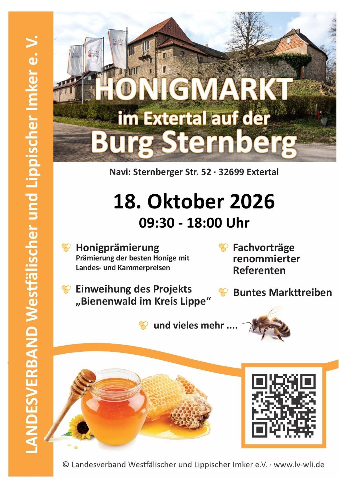 Der diesjährige Honigmarkt im Extertal findet am 18. Oktober 2026 in festlicher Atmosphäre auf der historischen Burg Sternberg statt.